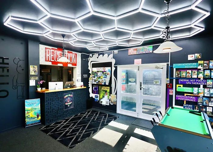Situated merely 5 minutes' walk from Polynesian Spa, Crashpalace Backpackers Rotorua hostel offers a spa center, a play area, and billiards for added enjoyment.